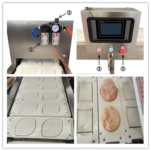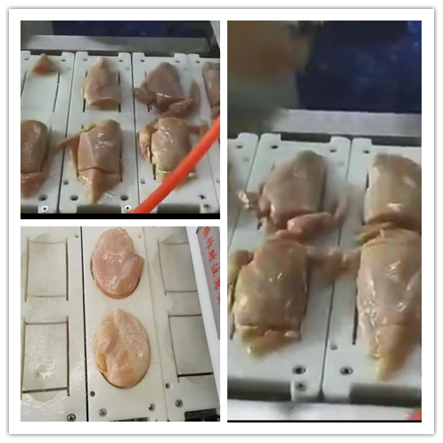 鮮肉整形機(jī)通過(guò)過(guò)更換不同的刀組把各種鮮肉切成成各種方形,圓形,橢圓形及其他異形等。切割后的成型產(chǎn)品均勻,可以做高品質(zhì)的產(chǎn)品。節(jié)省人工,外形完美一致。能顯著的提高產(chǎn)品質(zhì)量以及生產(chǎn)效率。