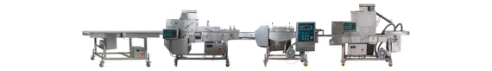 魷魚圈生產(chǎn)線把蝦或者其他海產(chǎn)品經(jīng)上粉,上稠漿,上鮮康或者干康,油炸,速凍等工藝做出裹粉的炸雞腿。面包蝦生產(chǎn)線的需要配置前處理設(shè)備和后處理設(shè)備:油炸,包裝等設(shè)備,