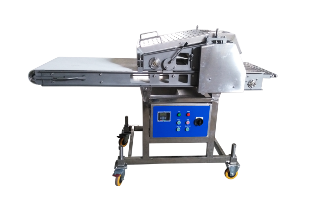雞肉壓整機(jī)適用范圍:該設(shè)備適用于厚度小于40mm、無(wú)骨的所有肉塊的壓延。